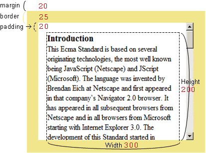 这个文档盒子绝对定位,有borders、paddings、margins、和滚动条: