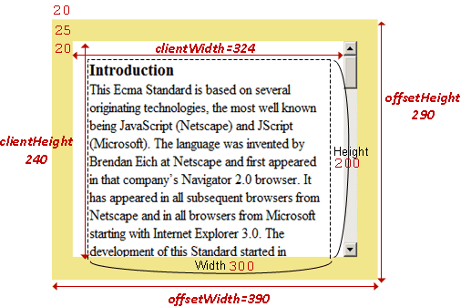 clientWidth = 300(width) + 40(paddings) - 16(scrollbar) = 324