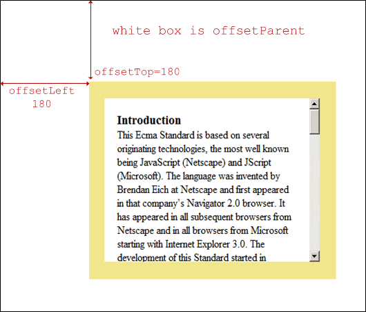 offsetParent/offsetLeft/offsetTop: offsetLeft和offsetTop反映了元素相对于它的offsetParent的偏移量。offsetParent是在布局上的父元素,例如:如果一个元素是绝对定位,那么offsetParent不是它的DOM上的父元素,而是离它最近的被定位过的元素(postion为非static的元素,如果没有则是body或者table cell)。